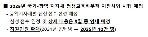 - 2024년 지원 인원 7만 명에서 2025년에는 10만 명으로 확대될 예정입니다.