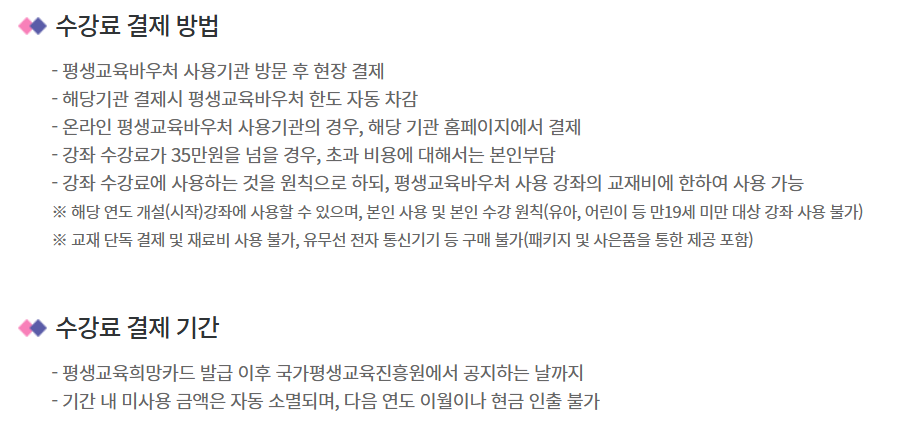 - 환급 불가: 강좌 등록 후 환불을 요구하면 바우처 지원금이 환급되지 않을 수 있습니다.