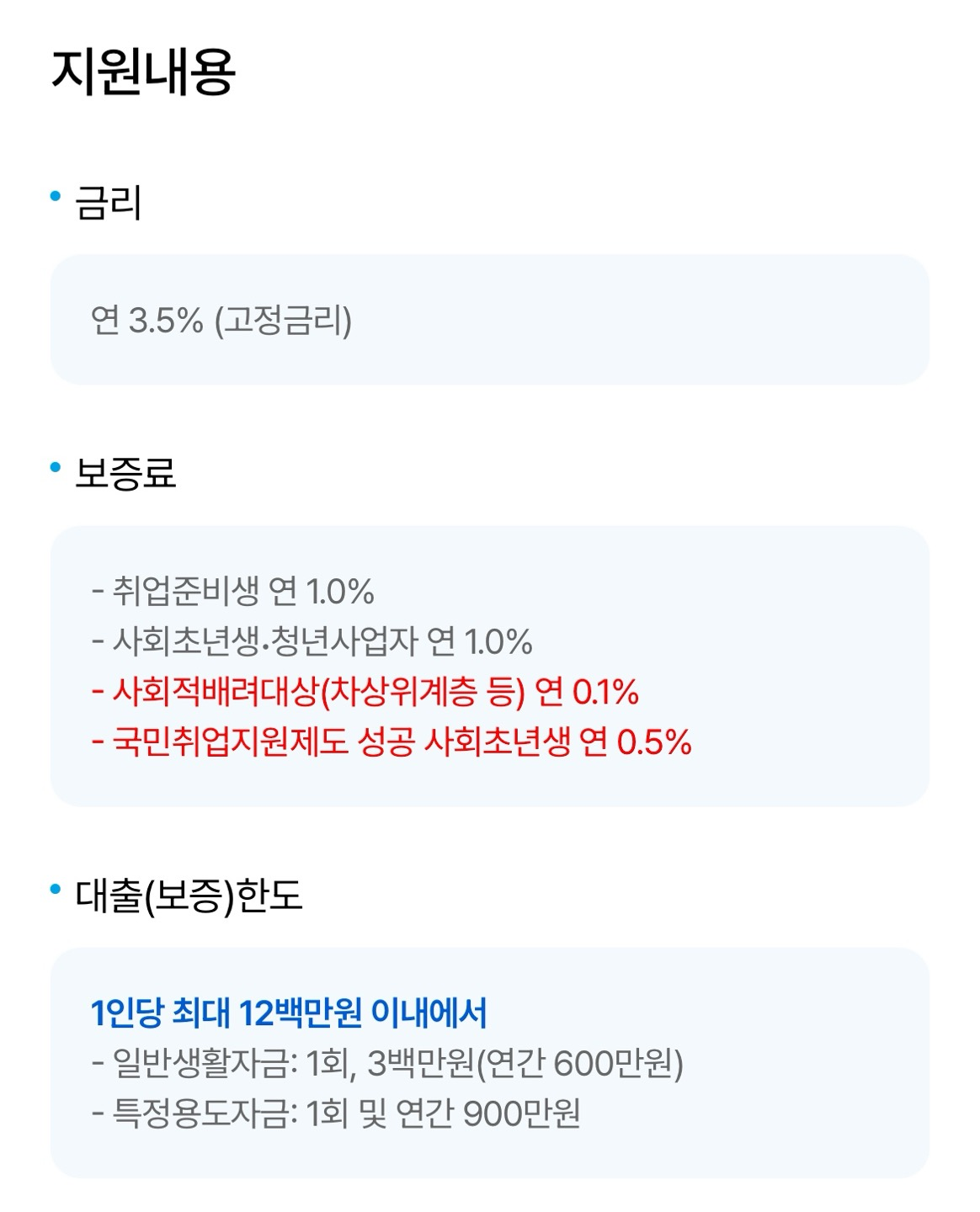 - 대출 용도: 생계비, 학자금 등 비투자 목적