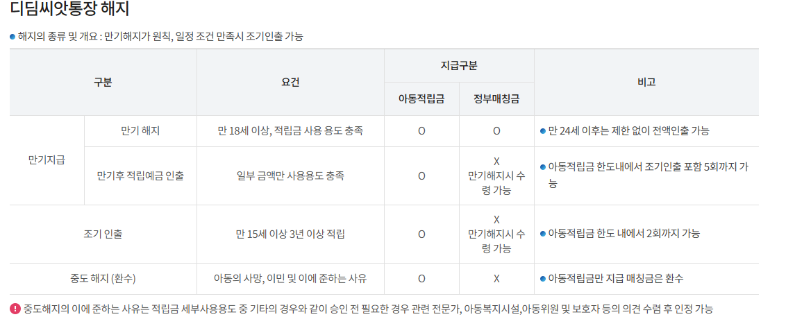 - 만 18세 도달 시 만기