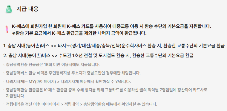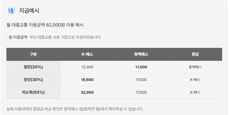 - 취약계층: 취약계층기초생활수급자, 차상위계층 등은 월별 교통비의 최대 64% 환급 (k-패스 대비 11% 추가 환급)