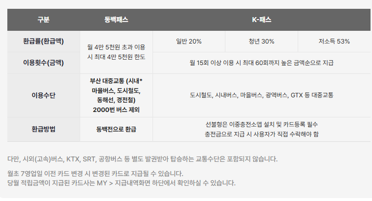 - 어르신: 65세 이상 50% 환급 (k-패스 대비 30% 추가 환급)